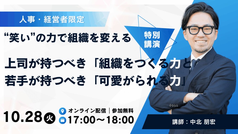 【10/28開催ウェビナー】上司が持つべき「組織をつくる力」と若手が持つべき「可愛がられる力」