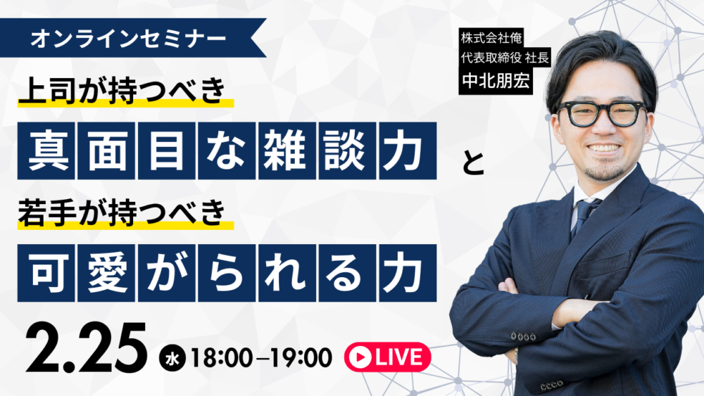 【2026/2/25開催・HRカンファレンス無料ウェビナー】笑いの力で組織を変える!上司が持つべき「真面目な雑談力」と若手が持つべき「可愛がられる力」produced by 株式会社俺